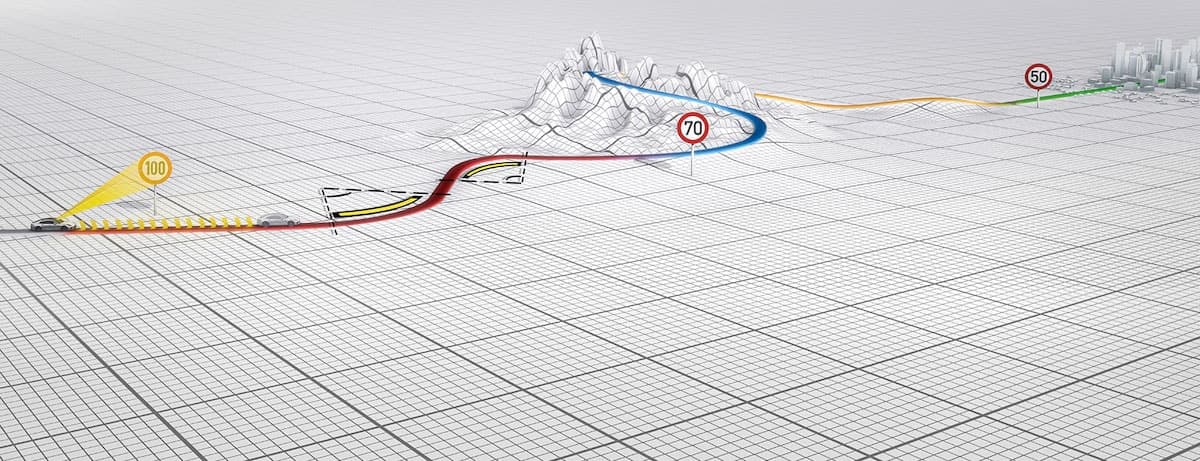 Porsche InnoDrive enhances adaptive cruise control technology with various new and innovative features. The standard Porsche Adaptive Cruise Control (ACC) system will control the speed of your vehicle in conjunction with the speed of the car in front of you, even down to a halt utilizing the stop-and-go function. Porsche InnoDrive takes this further and predictively sets your vehicle's speed for upcoming road conditions. With high-resolution navigation data and information supplied by the radar and video sensors, Porsche InnoDrive analyzes speed limits and topographical road features, such as gradients or corner radii, along your route even before you reach them and modifies the gearshift strategy and speed of the vehicle accordingly.
